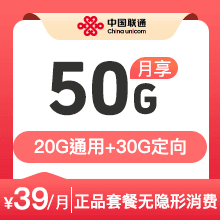 联通王卡2.0-39元50G